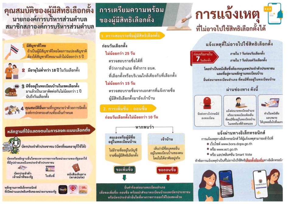 แผ่นพับประชาสัมพันธ์การเลือกตั้ง นายกองค์การบริหารส่วนตำบล และสมาชิกสภาองค์การบริหารส่วนตำบล[22 ธันวาคม 2568]