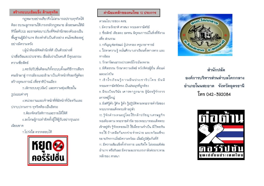แผนพับการประชาสัมพันธ์การต่อต้านการทุจริต