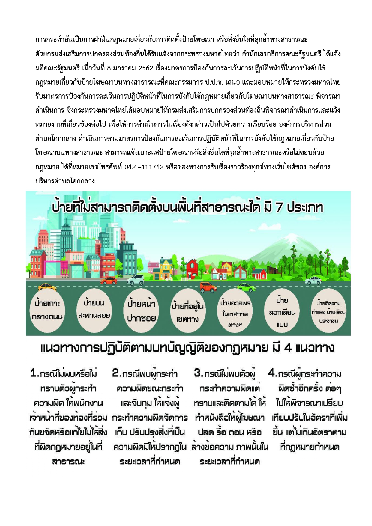 ชื่อเรื่อง : ช่องทางการแจ้งเบาะแสป้ายโฆษณา หรือสิ่งอื่นใดที่รุกล้ำทางสาธารณะหรือไม่ชอบด้วยกฎหมาย